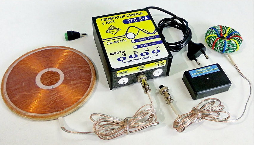 Прибор состоит из катушки, которая по сути является излучателем электростатического поля и генератора электрического синусоидного сигнала. Для более точечного лечения используется еще катушка меньших размеров называемая Тором.